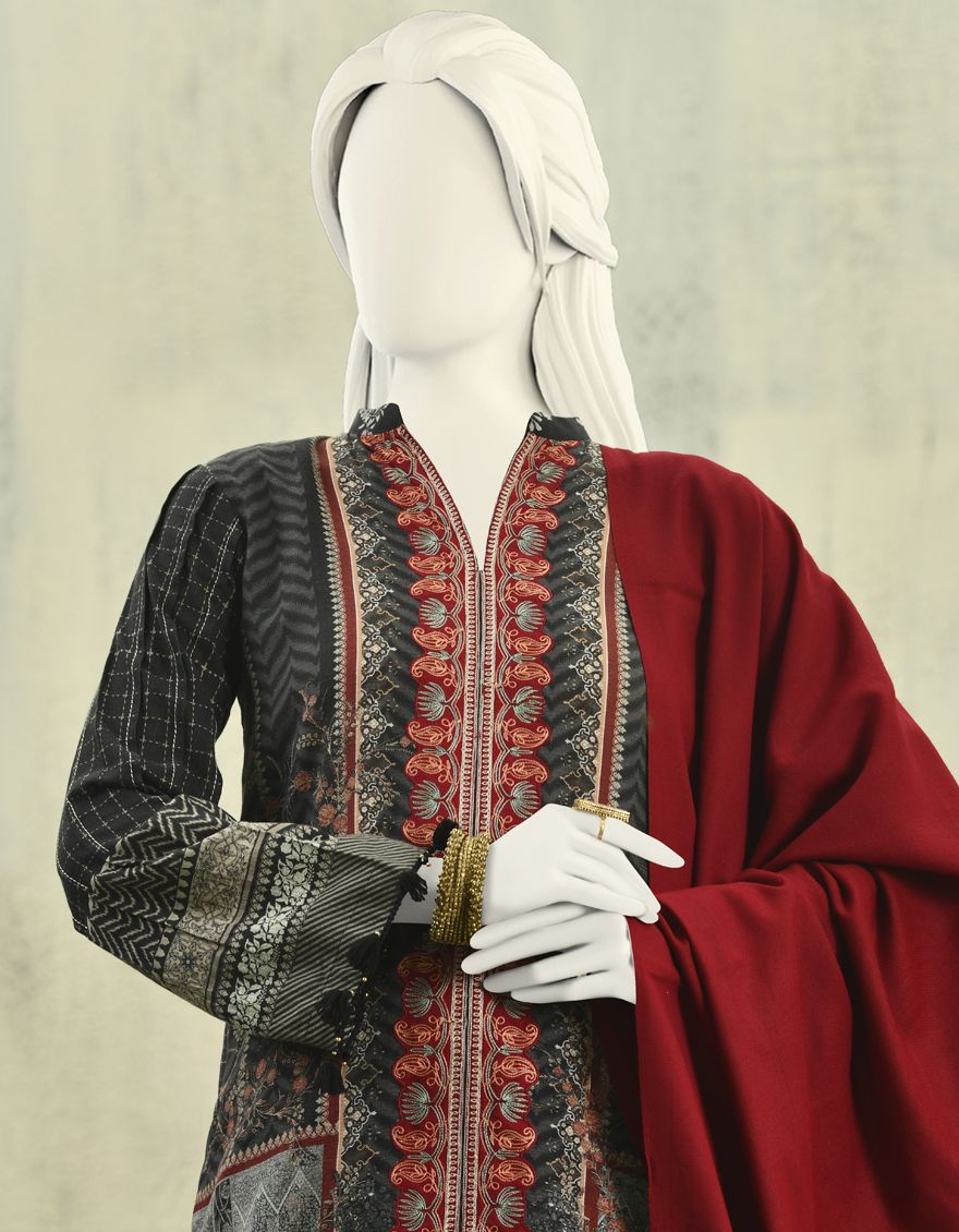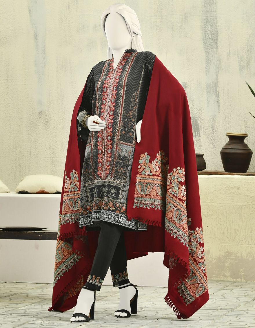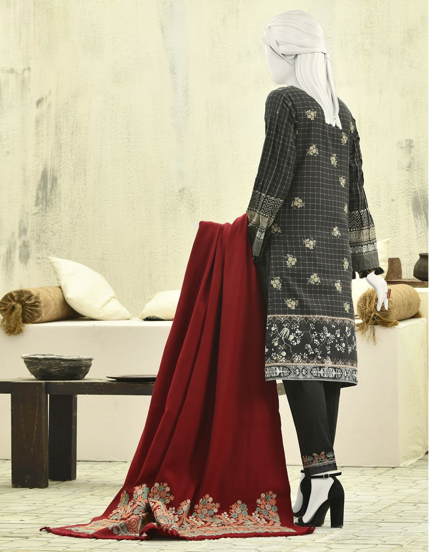 BLACK KHADDAR 3PC STITCHED | JJPW-W-JPWS-AU-21-290 FB/BLACK YARN