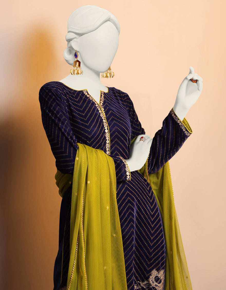 BLUE VELVET 3PC STITCHED | JJPW-W-JPWS-AU-23-661 FB/FF-328