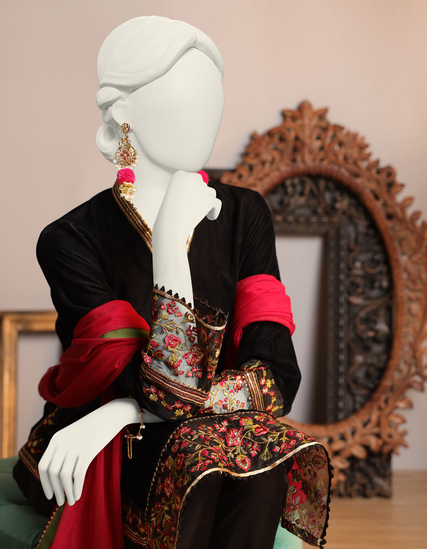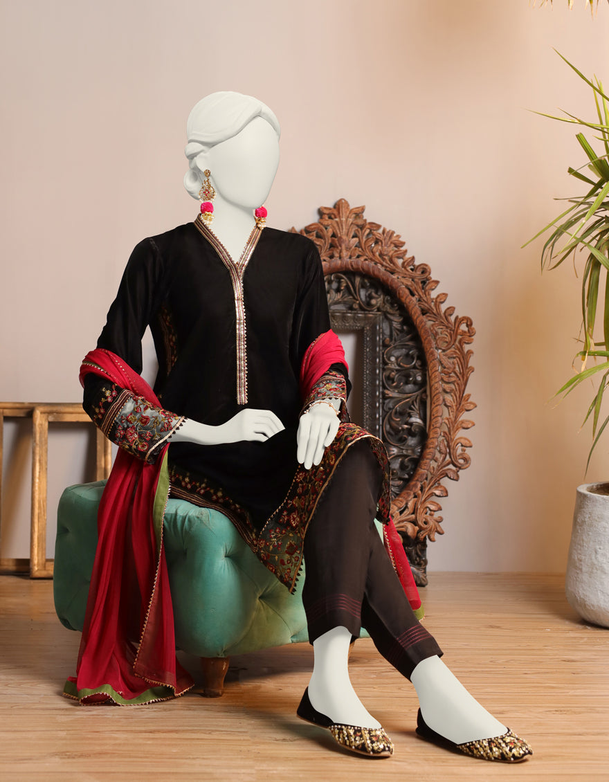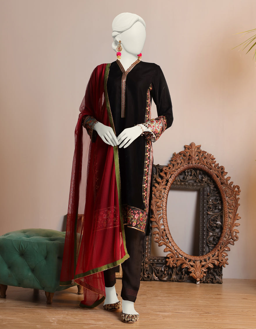 BLACK VELVET 3PC STITCHED | JJPW-W-JPWS-AU-23-664 FB/FF-328