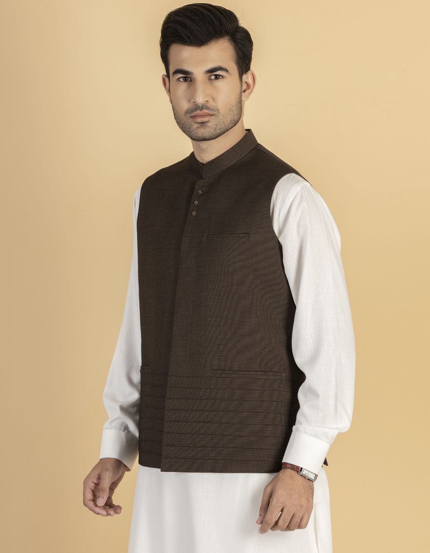 COFFEE BROWN WAISTCOAT | JJVC-AU-27418/S21/JJ7378-CL