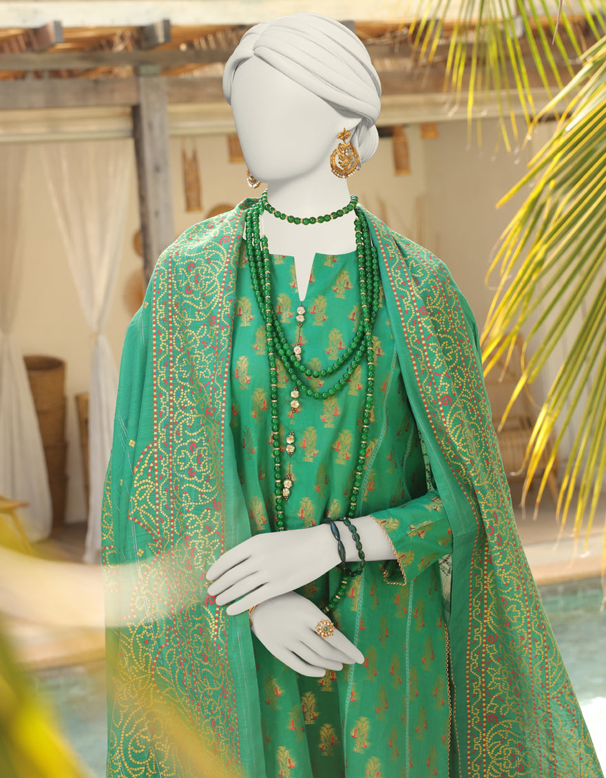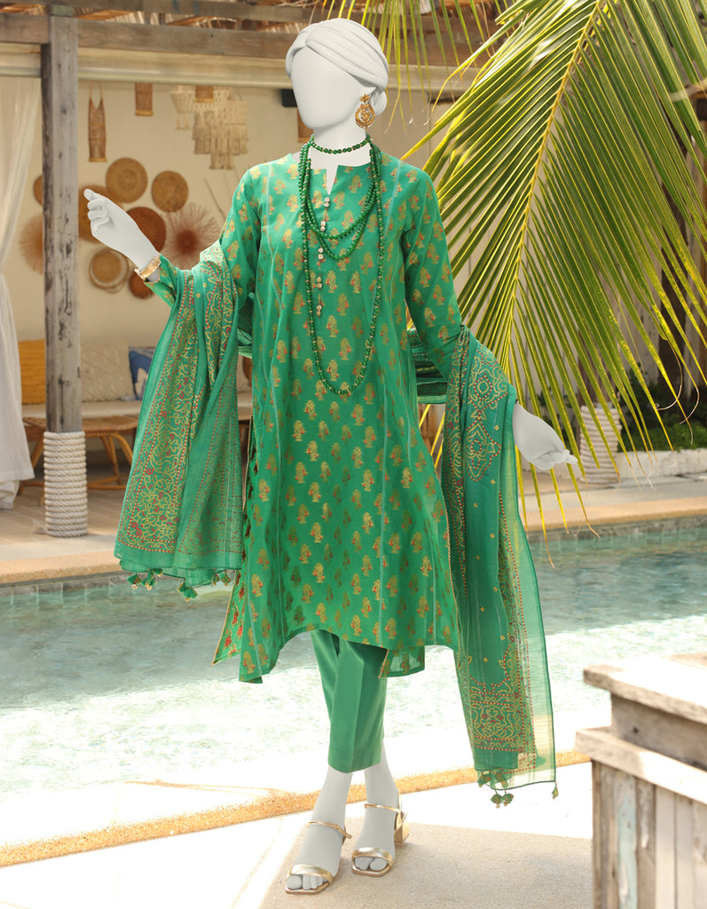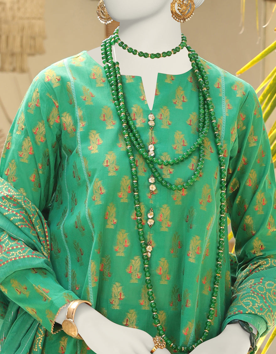 GREEN JACQUARD 3PC UNSTITCHED | JLAWN-AU-04-233