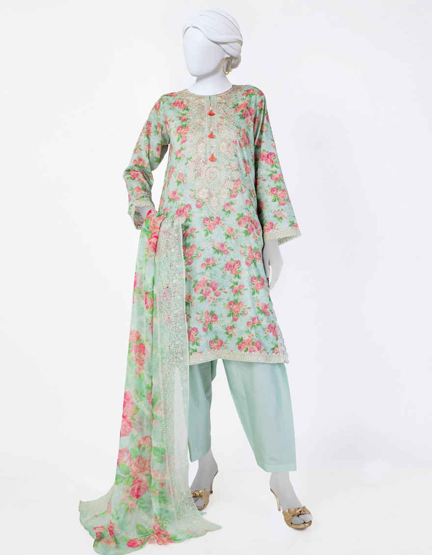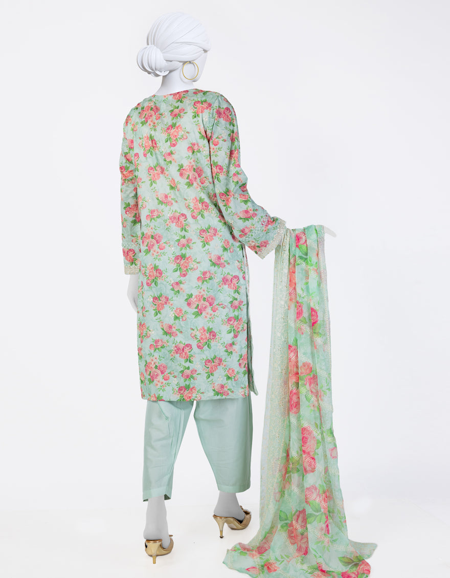 GREEN LAWN 3PC UNSTITCHED | JLAWN-S-25-843 FLORIST-3