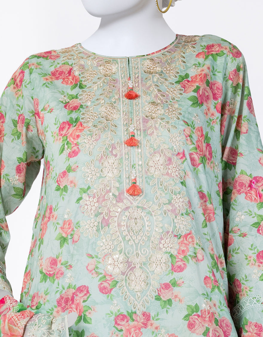 Embroidered Digital Printed Lawn Shirt: 2.5 Meters