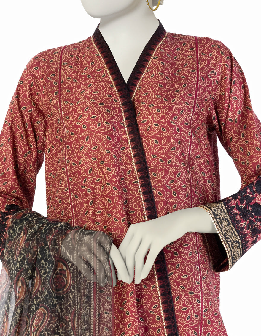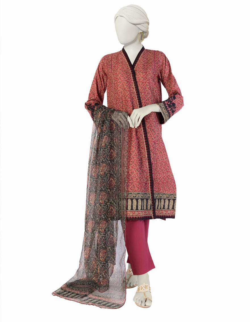 MAROON LAWN 3PC STITCHED | JLAWN-S-25-913/S AJR