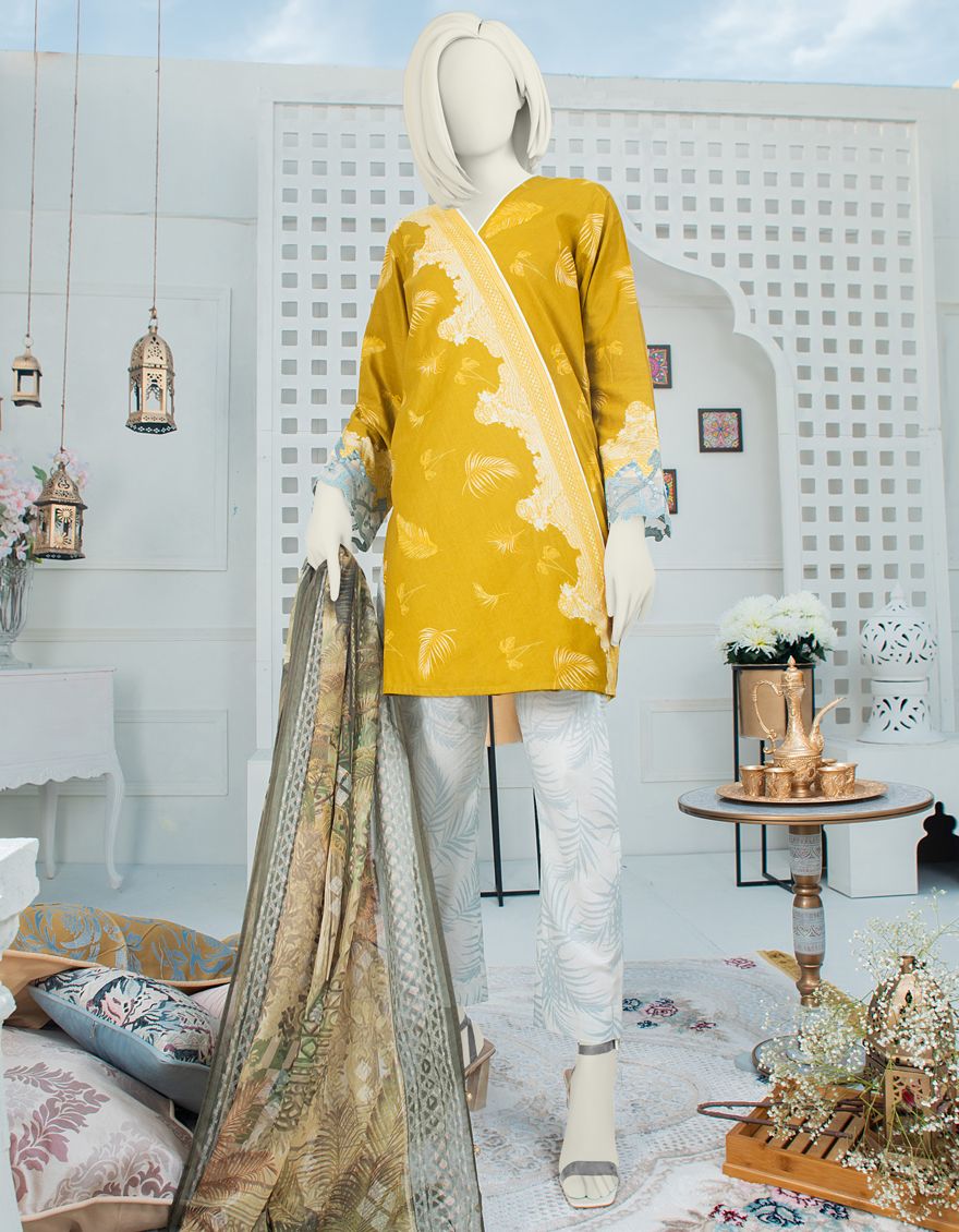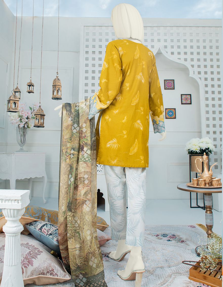Embroidered Mill Print Lawn Shirt - Mill Print Basic Lawn Trouser - Basic Burnout Lawn Dupatta