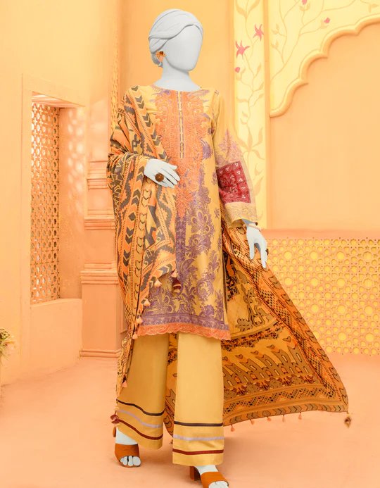 Collection Type: Heavy Embroidered Mill Print Lawn Shirt - Dyed Laced/Cut Lawn Trouser - Basic Mill Print Impure Chiffon Dupatta