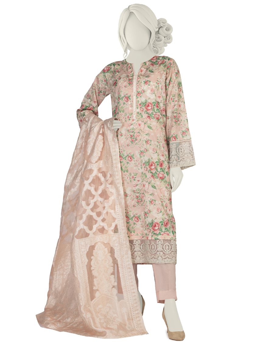 Collection Type: Embroidered Printed Lawn Shirt & Organza Jacquard Dupatta With Trouser
