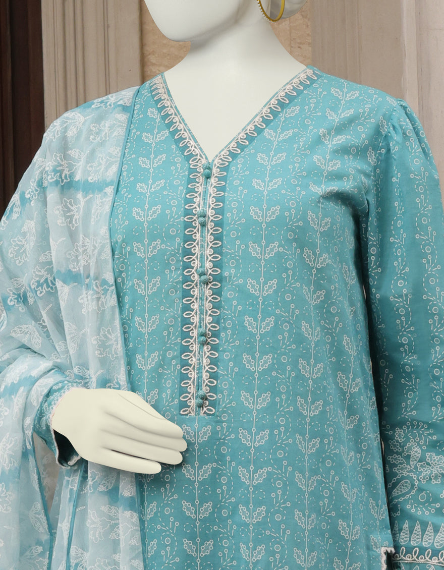 AQUA LAWN 3PC UNSTITCHED | JLAWN-S-AU-23-119 AQUISH