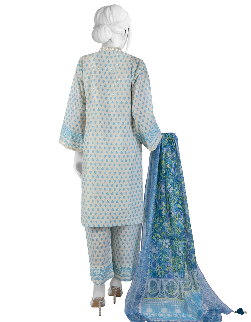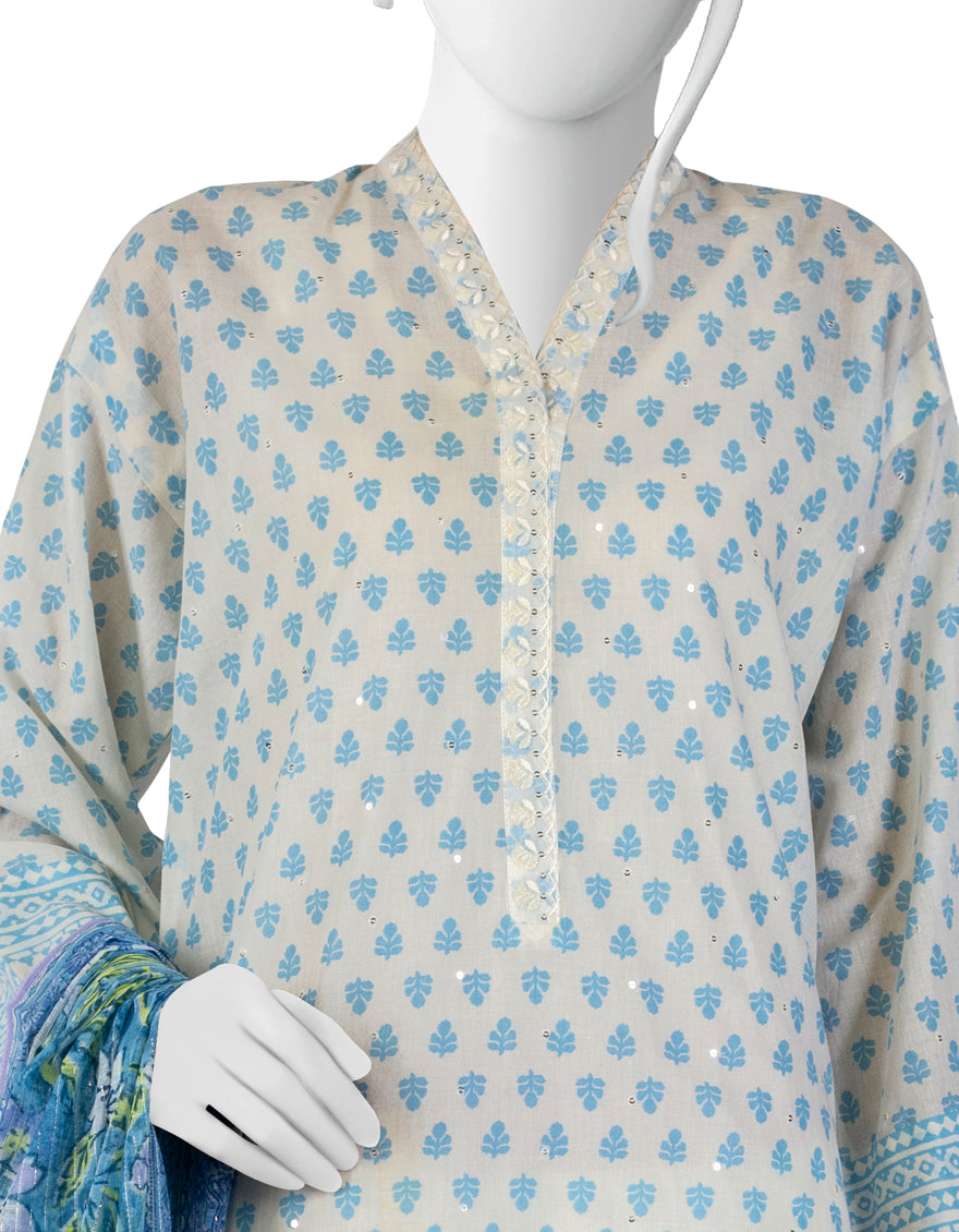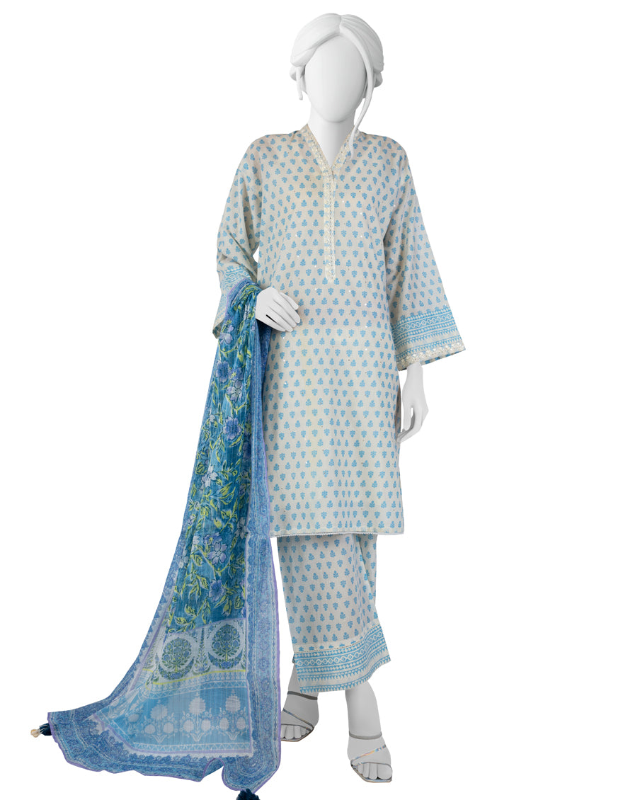 WHITE & BLUE LAWN 3PC STITCHED | JLAWN-S-AU-23-197/S UWAYAM