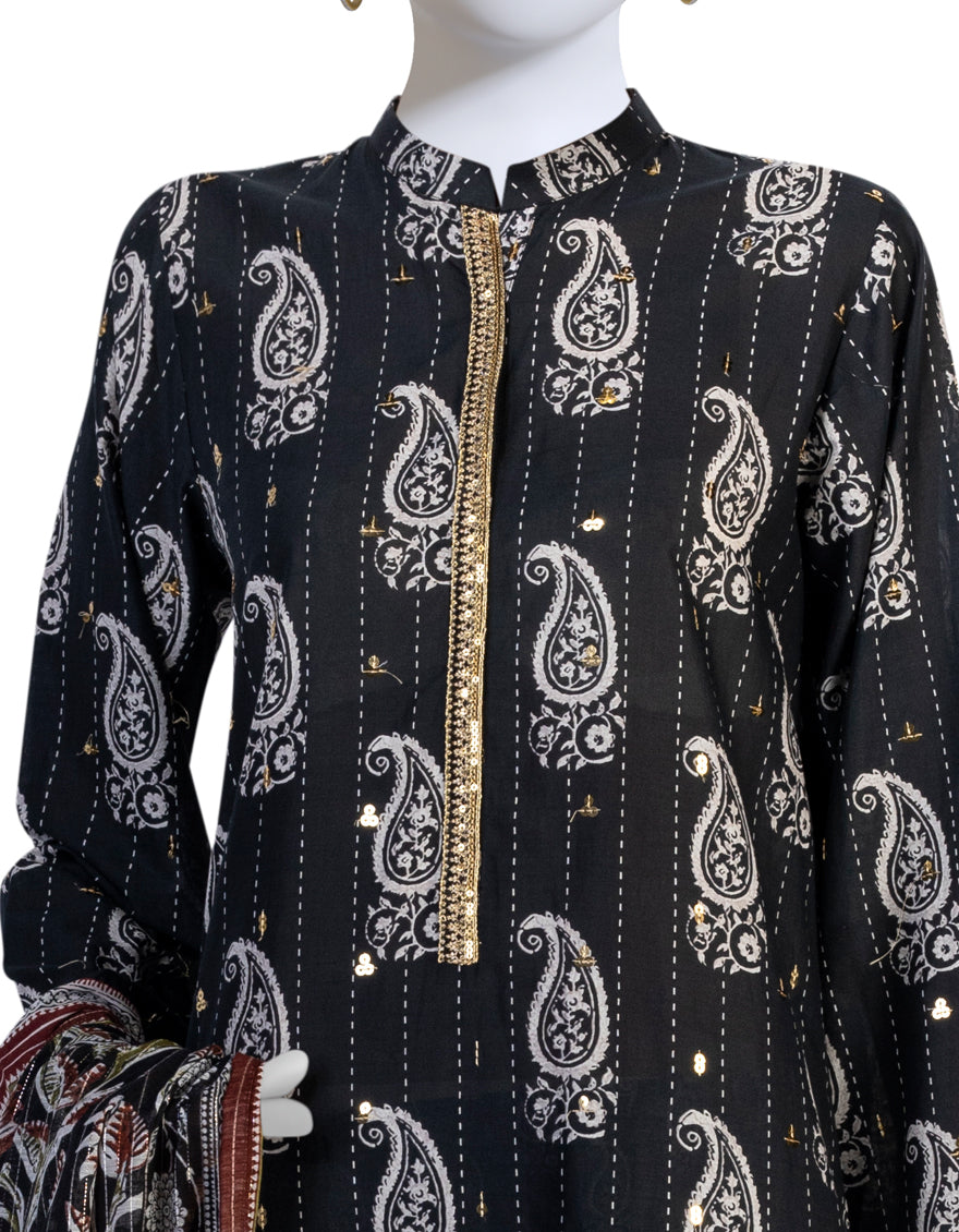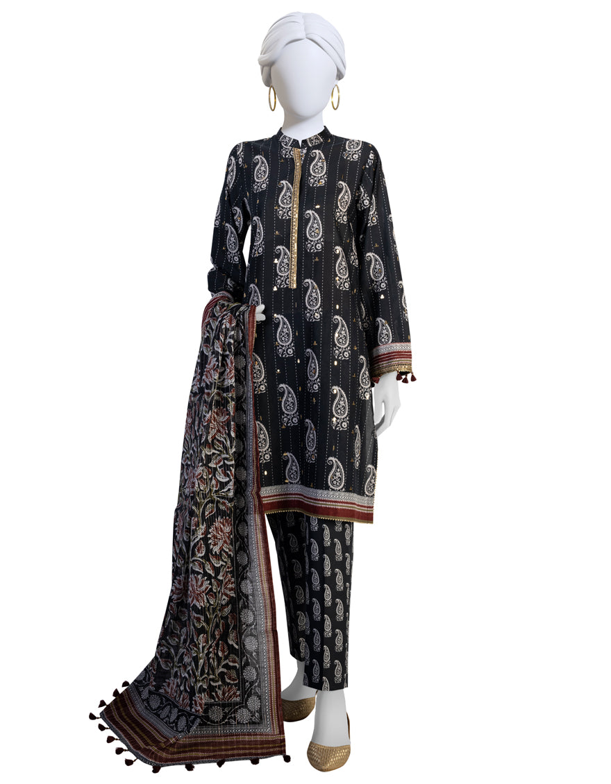 BLACK LAWN 3PC UNSTITCHED | JLAWN-S-AU-23-198 MISKINA