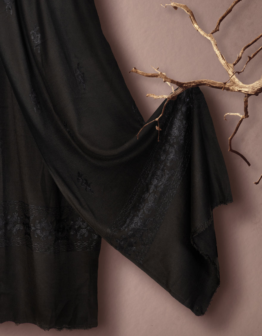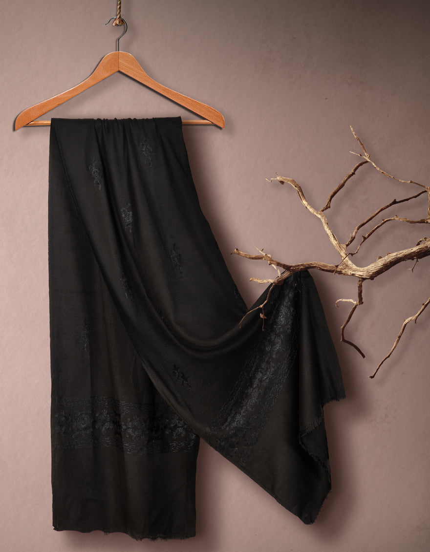 BLACK SHAWL | JSH-SHW-AU-21-0020 FB/AARI BORDER SHAWL - BLACK