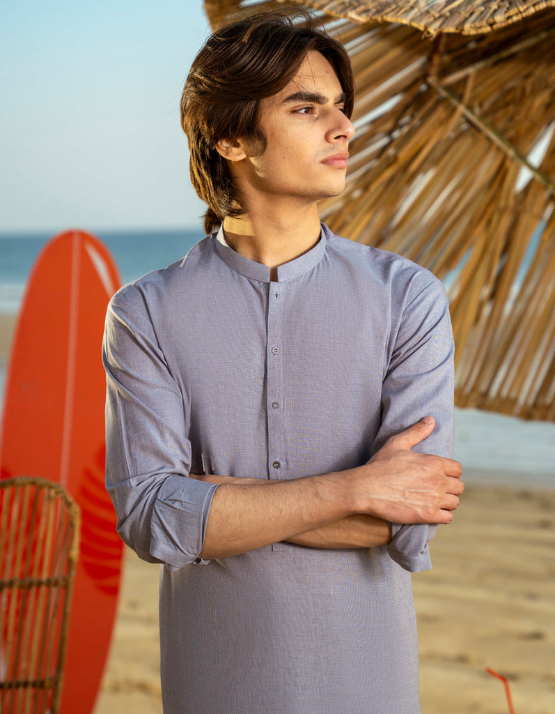 Designed with the young gentleman in mind, this Light Grey Cotton Kurta Trouserexudes charm and sophistication. Its classic yet stylish look offers versatility, perfect for both casual and formal occasions.