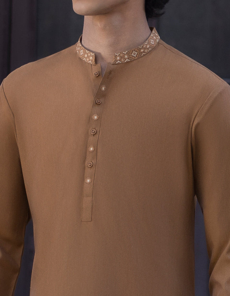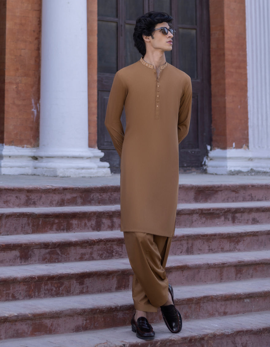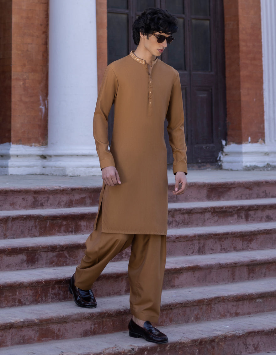 Semi-Formal Suit for Teen With Computerized Embroidery on Collar and Placket