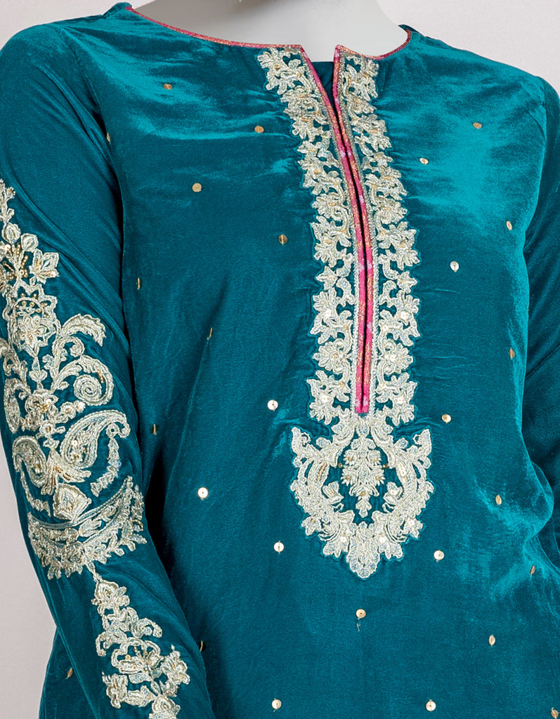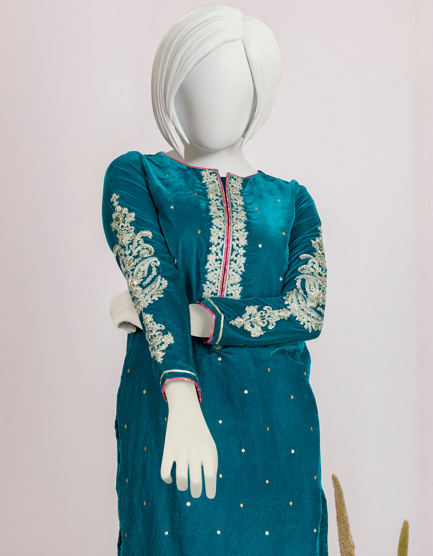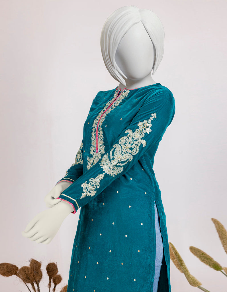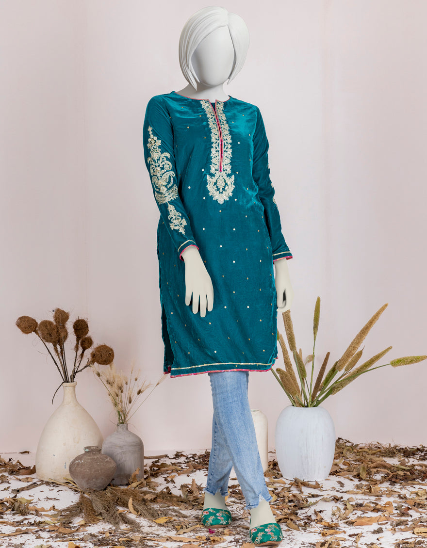 TEAL VELVET KURTI | JYGK-W-JJTK-AU-22-061 FB/FF-328