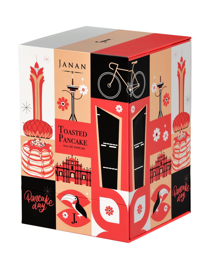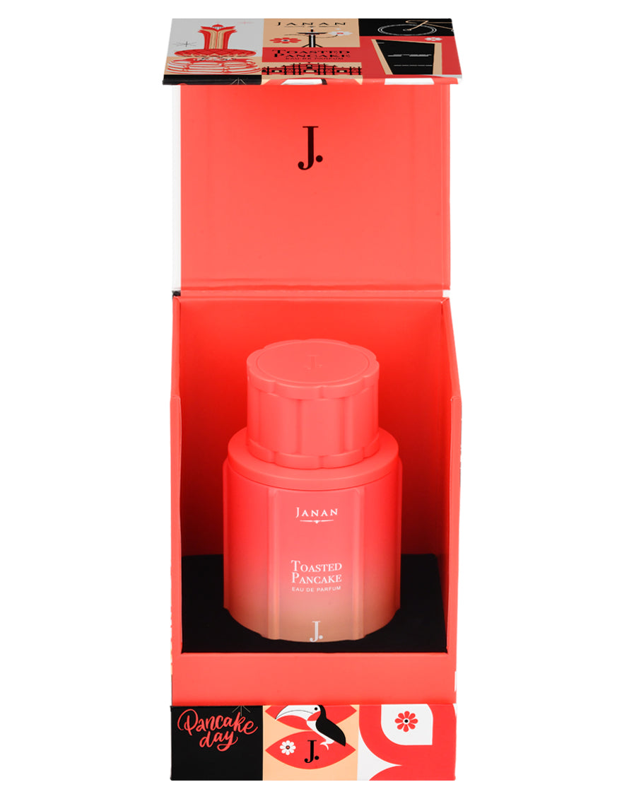 Dive into the cozy sweetness of Toasted Pancake, a fragrance that captures the irresistible aroma of a warm breakfast treat fresh off the pan. It opens with a bright touch of mandarin, adding a juicy, sunlit sparkle that feels uplifting and freshly zested. In the heart, soft white flowers, luminous petalia, and creamy coconut melt together, creating a comforting glow, like warm batter rising into fluffy perfection. The blend feels soft, creamy, and lightly sweet, evoking the warmth of toasted edges kissed by golden syrup. As it settles, a rich layer of vanilla, smooth cashmeran, cedarwood, and cozy musk wraps the skin in a decadent warmth, leaving behind a softly sweet, freshly-baked trail. Delicious, warm, and beautifully comforting, Toasted Pancake is a golden gourmand moment you’ll want to savour again and again.